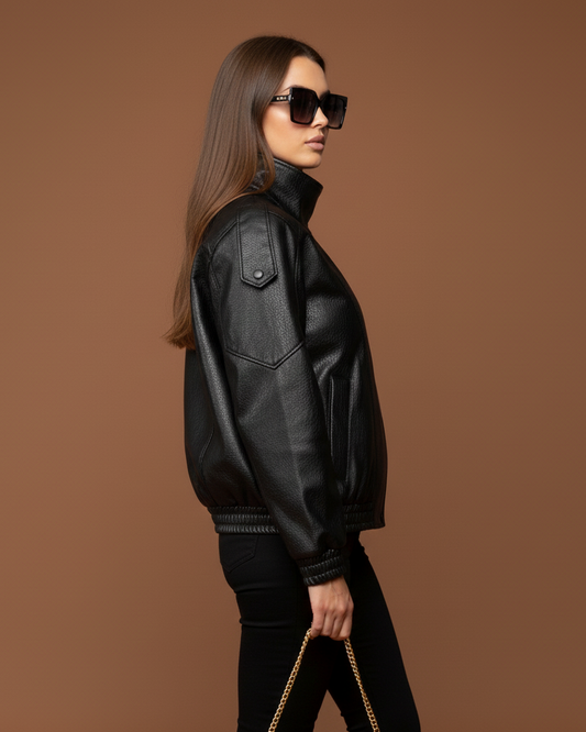 "Clara" Oversize Lederjacke mit Stehkragen